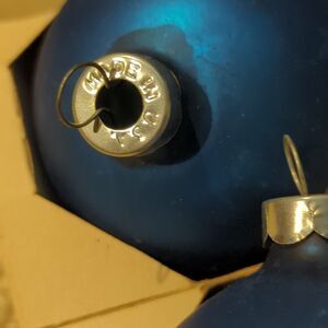 This lot of 6 vintage Coby Glass Christmas ornaments features retro blue bulbs, hand-blown from glass. The round ornaments are perfect for adding a nostalgic touch to your holiday decor, with a classic blue color and retro style that can be enjoyed year after year. Each ornament measures 2 1/4 inches in width and comes in a box for easy storage and preservation.