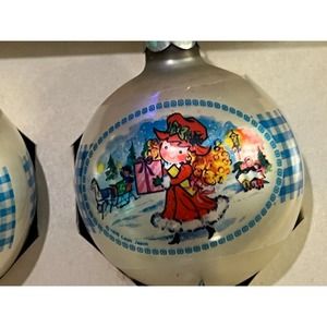 Set of 6 Polly Pal Coby glass ornaments from 1976 by Leon Johnson