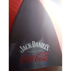 The umbrella is perfect for outdoor events and beach days, with red and white colors that stand out. It's an original piece, with unknown origins but in great condition. Don't miss out on the opportunity to own this one-of-a-kind Coca-Cola and Jack Daniel's umbrella.
