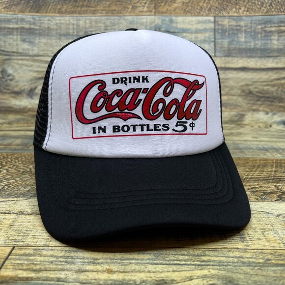 Vintage Coca Cola Mens Trucker Hat Black Snapback 1892 Retro Logo Soda Pop Cap