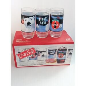 Vintage Coca Cola Polar Bears Indiana Glass Set of 8 Tumblers 16oz new in open box