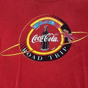 Vintage Coca Cola Single Stitch Road Trip Tee Shirt Top Made in USA Red Large