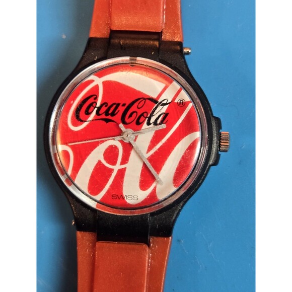 Vintage Coca Cola Swiss Analog Watch. New Battery. 6.75" Band.