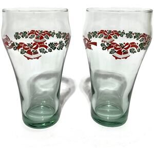 Vintage Coca-Cola Glasses With Christmas Holiday Theme Set of 2