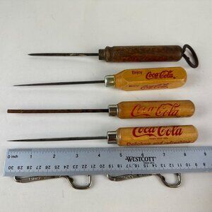 Classic Coca-Cola ice picks and bottle openers with vintage branding. Ideal for collectors or practical use with nostalgic charm.