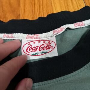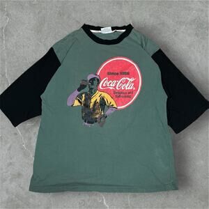 Vintage Coca-Cola T-Shirt Baseball Green Black Colorblock Elbow Sleeve Distress