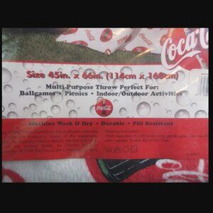 Vintage Coca-Cola Tailgater Throw Blanket 45" x 66" Red White Black NOS Coke