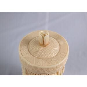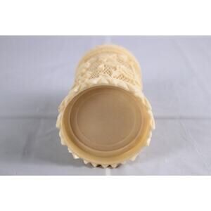 Vintage 1960's plastic cocktail forks, carved, reticulated holder, 36 forks. Use on charcuterie board. Some discoloring shown on photos. Holder is 4in high by 2.5in wide.