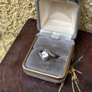 Vintage cubic zirconia and sterling silver cocktail ring in size 7 3/4. No makers mark. Nice sparkle