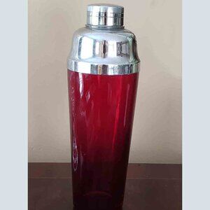 Vintage Art Deco Style Glass and Chrome Ruby Red Cocktail Shaker/Drink Mixer.