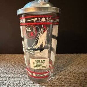 Vintage, MCM Hazel Atlas Cocktail Shaker, sports themed with 8 Drink Recipes, Chrome Metal Lid, 8”H