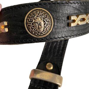 Vintage Code Azure Medusa Black Leather Belt 42