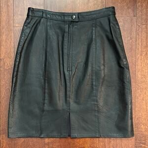 Vintage Code Nouveau Classic and Versatile Black Leather Pencil Skirt, Size 4/Sm