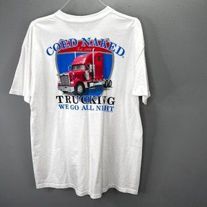 Vintage Coed Naked Trucking Graphic T Shirt size XL Anvil Trucker Semi Crewneck