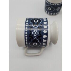 Vintage Coffee Or Tea Set Navy Paisley 2 Cups, Cream & Sugar Porcelain