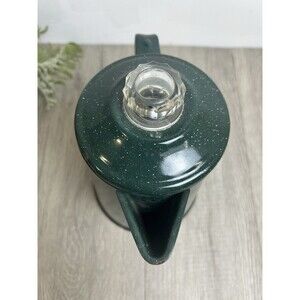 Vintage Coffee Pot Percolator, Camping Pot Enameled Green With White Speckles