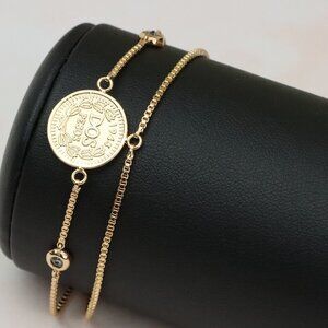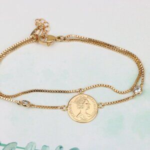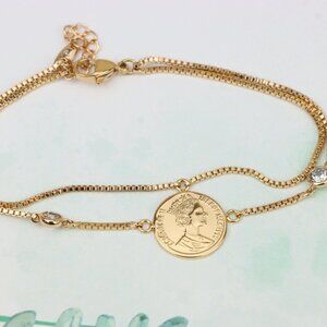 " Vintage Coin Charm Rose Gold Bracelet with Dual Chain Design, XPBL0673
