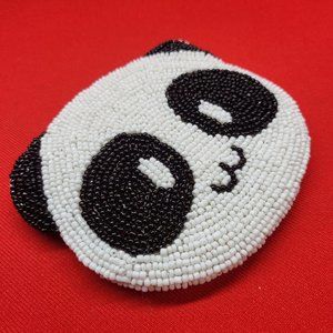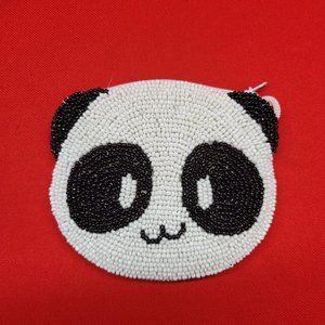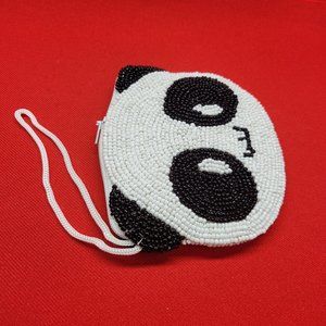 Vintage Coin Purse Panda Bear Beaded Black & White Silk Lined
