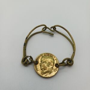 Vintage Coin Womens Bracelet Gold Tone Small 5" long