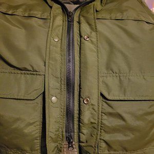 Vintage Fire Uniform Cold Weather Jacket by Blauer. Large size 44-46. Gortex with removable hood. Hood rolls up into Velcro pocket and becomes a puffy collar