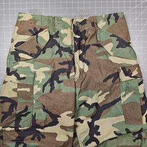 Vintage 1989 U.S. Army Cold Weather Trousers Class 2 medium regular in M81 woodland camouflage. The back right pocket snap is damaged and inoperable. This is a manufacturing flaw, and it's not damage from use. The pants are in like new condition. Probably only washed once. 2729