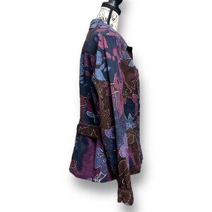 Vintage Coldwater Creek 16 Floral Front Pockets Jacket Purple Blue Boho Artsy