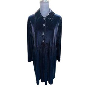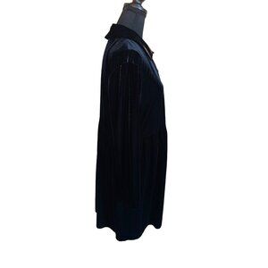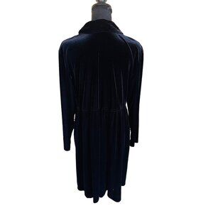 This vintage Coldwater Creek dress is a sophisticated choice with its classic black velvet fabric and mid-length design. The buttoned front and long sleeves add an elegant touch, making it suitable for both formal and semi-formal gatherings.