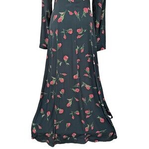 Vintage Coldwater Creek Blue Floral Rose Floor Length Dress sz 4 Bridesmaid Boho