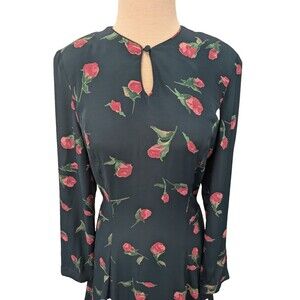 -This is a absolutely gorgeous vintage gem of a dress, a teal blue color with a soft rose design all over