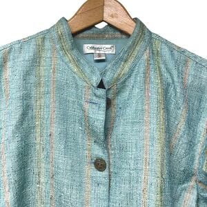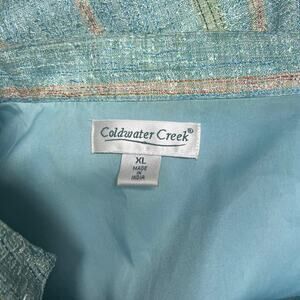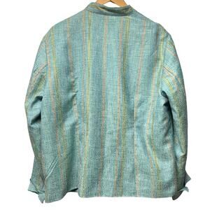 Vintage Coldwater Creek Blue Green Striped Tweed Button Up Jacket Blazer Sz XL