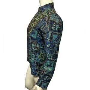 Vintage Coldwater Creek Blue and Green Floral Patterned Zip Up Jacket Light Coat