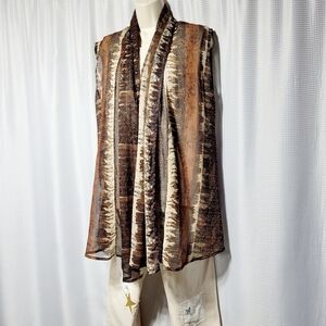 Vintage Coldwater Creek Western Shades of Brown, Rust, & Cream with a Spec of Pink Kimono Wrap Cardigan Women's (S*)