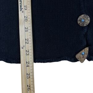 Vintage Coldwater Creek Cardigan L/XL Black Artisan Boho Knit Turquoise Buttons