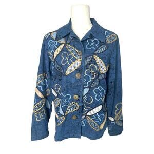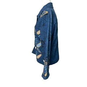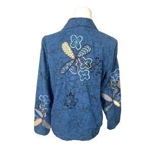 Vintage Coldwater Creek Embroidered Denim Jean Floral Jacket Small Boho Festival