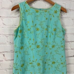 Vintage Coldwater Creek Embroidered Sheath Dress Size 12P Spring turquoise vacay