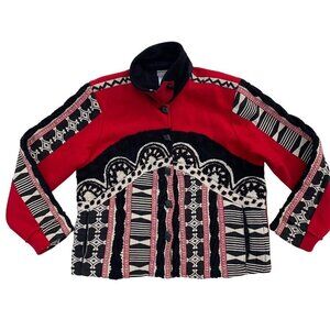 Vintage Coldwater Creek LARGE Southwest Red Wool & Tapestry Boho Jacket/Coat