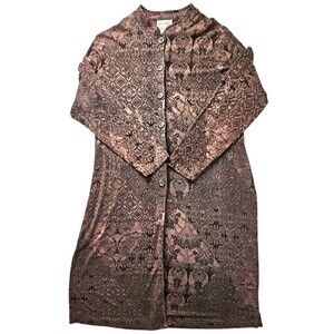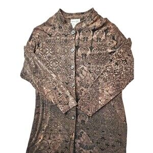 Vintage Coldwater Creek PXL Button Blouse Tapestry Boho Hipster Brown Duster