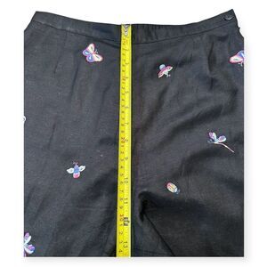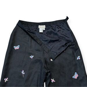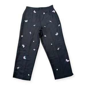 Vintage Coldwater Creek Pants Women’s 10 Black Linen Blend Butterfly Embroidered Trousers