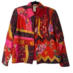 Vintage Coldwater Creek Patchwork, Embroidered Jacket Sz M Artsy, Cottagecore