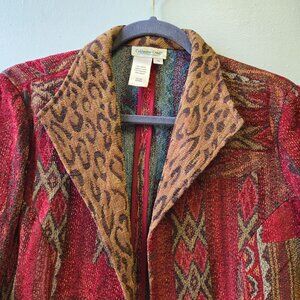 Vintage Coldwater Creek Patchwork Open Jacket Southwestern Leopard Tapestry PM