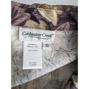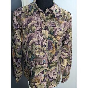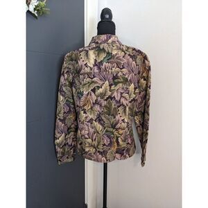 Vintage Coldwater Creek Purple and Green Leaf Print Denim Jacket - Small
