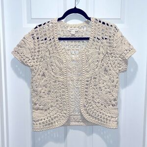 Vintage Coldwater Creek Stunning Crochet Tan Cream open front Cardigan bolero