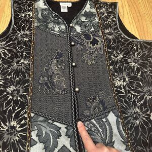 Vintage Coldwater Creek Vest 2X Mixed Media Tapestry Patchwork Boho Artsy