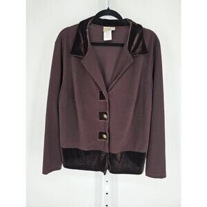 Vintage Coldwater Creek Womens Sz 1X Button Up Jacket Brown Velvet Trim