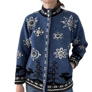 Vintage Coldwater Creek Wool Snowflake Christmas Theme Cardigan Jacket Sz S