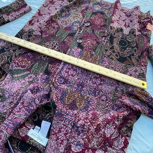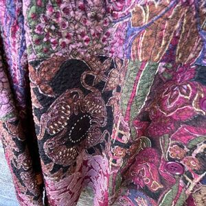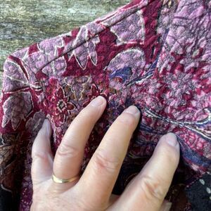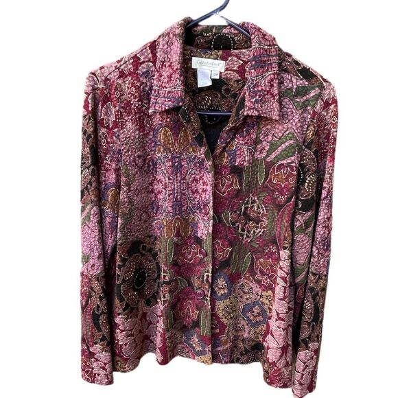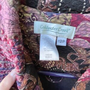 Vintage Coldwater creek made in USA textured button front top. Dark floral deep reds purple maroon
