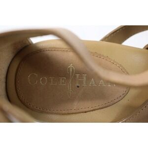 Vintage Cole Haan Shayna Strappy Heel Sandals in size 9B. They are in good condition with scuffs on the leather outsoles at the ball of the foot due to normal wear and a couple of tiny indents in the leather on the toes of both insoles.