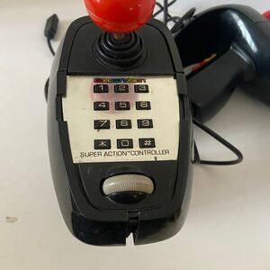 This vintage Coleco Vision Super Action Controller Joystick Pair is a great addition to your gaming collection. The controllers are compatible with the ColecoVision console, games, and accessories, and have a wired connectivity of 3ft. The black plastic controllers feature 2 fans and are perfect for 2 players.