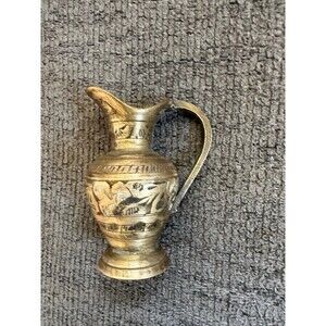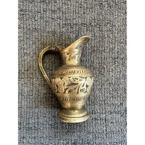 Vintage Collectable Rustic Etched Brass Mini Pitcher Aged Patina Tarnished Charm