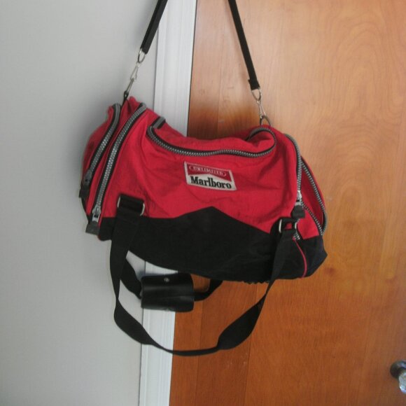Vintage Collectible 90s Marlboro Unlimited Red & Black Duffel Bag Multi Pockets